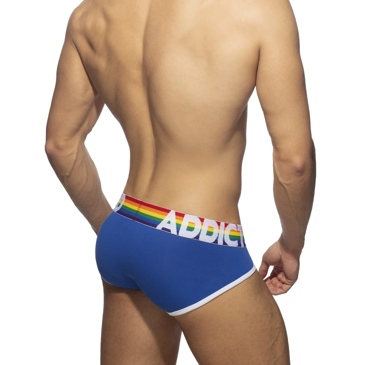 Charakterystycznym elementem jest tęczowy pas w stylu jacquard z logo ADDICTED, który nadaje całości sportowo-modowy wygląd. To właśnie ten detal robi największe wrażenie wizualne i wyróżnia ten zestaw na tle zwykłej bielizny. Każda para w zestawie ma identyczną konstrukcję, ale inny kolor, dzięki czemu całość jest spójna, a jednocześnie różnorodna. To bielizna, która nie próbuje być „ukryta” - raczej ma swój styl i go pokazuje. Dzięki elastycznemu materiałowi i dobrze zaprojektowanej kieszeni z przodu, komfort noszenia stoi na wysokim poziomie. Nic nie uciska, nic nie odstaje - wszystko jest dopasowane i wygodne.